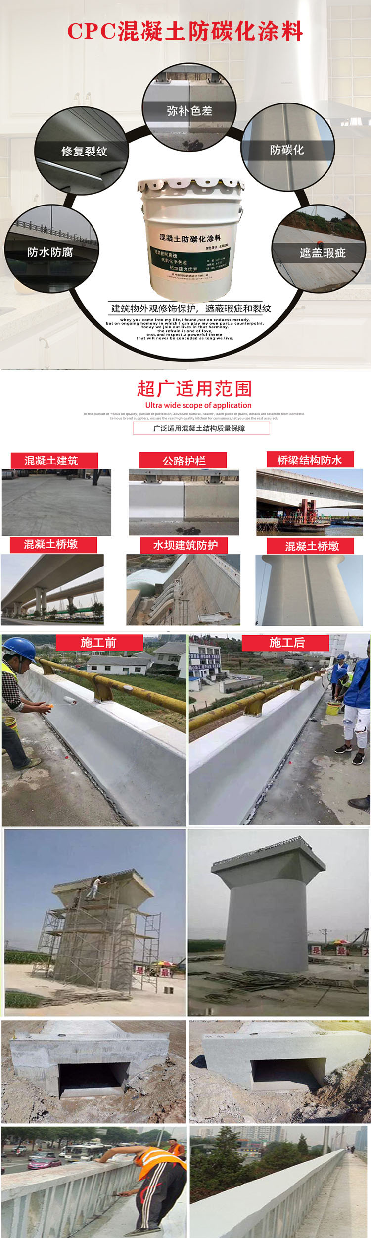 ★ 預(yù)防混凝土中和和輕度化學(xué)腐蝕,防范氯離子、酸、堿和鹽類(lèi)物質(zhì)滲透到混凝土中,預(yù)防鋼筋腐蝕;
